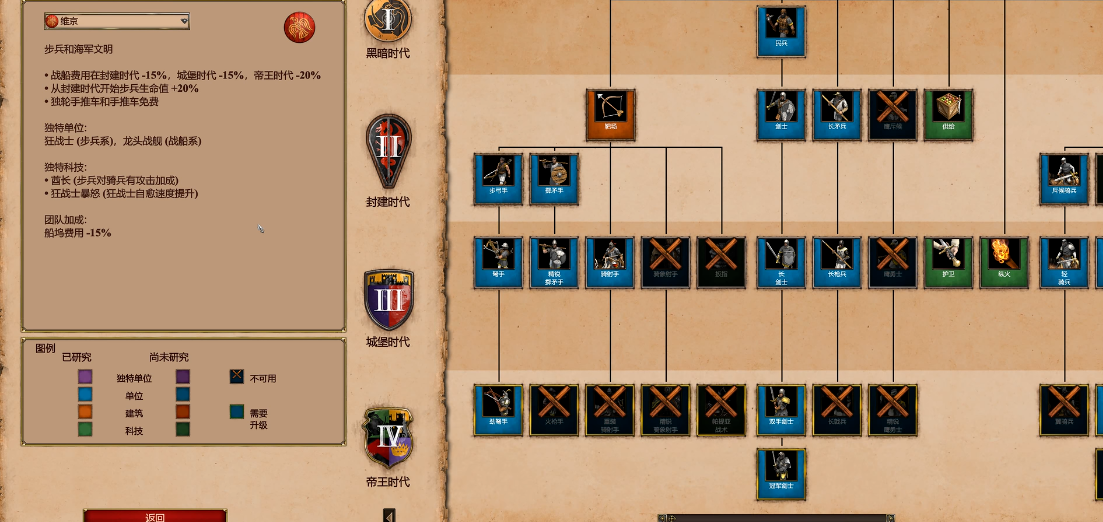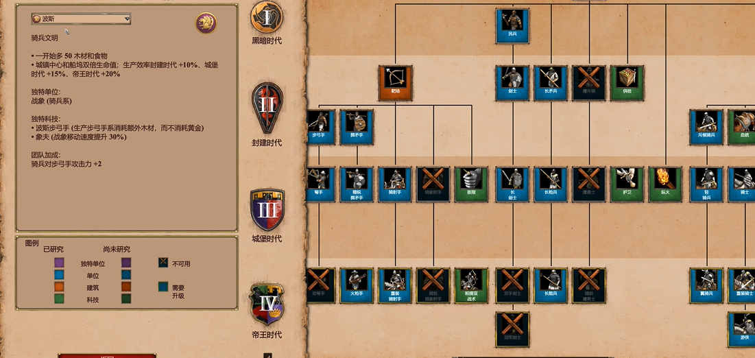 波斯以其强大的骑兵体系闻名,特别是生命值高达600的战象,是单体最强的单位之一,攻城和正面冲锋能力极强,但移动速度慢是它的短板。土耳其则代表强势的火药文明,其特殊兵种苏丹亲兵配合手推炮,能形成攻守兼备的强力组合。不列颠拥有射程最远的精锐长弓...