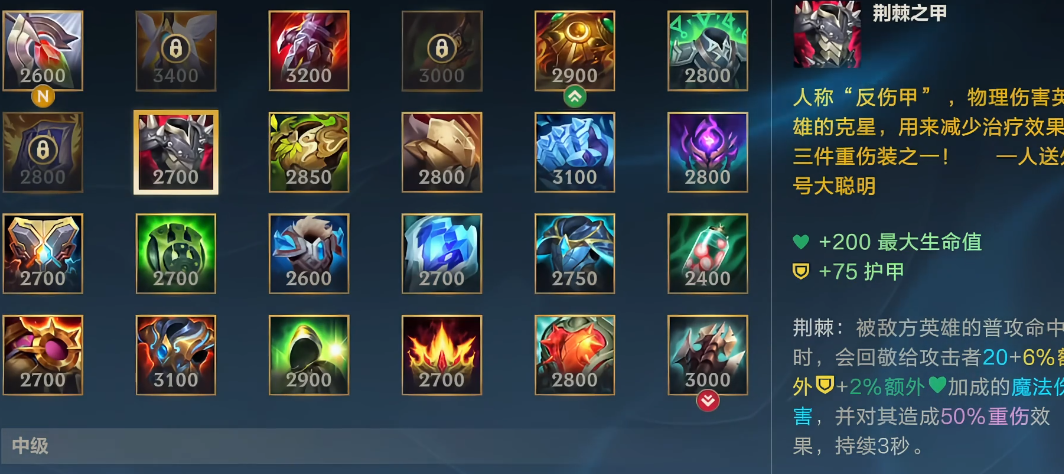 到了游戏后期,布隆的装备应以石像鬼石板甲和荆棘之甲为主,继续强化物理防御和生命偷取效果。守护天使作为备选装备,可以在关键时刻提供复活机会,提高容错率。冰霜之心的冷却缩减效果在后期仍然很重要,与其它防御装备搭配,布隆能够在高地争夺战或龙团战中充当坚实的防线。装备的选择需要根据对手的阵容灵活调整,比如面对高魔法伤害时,可以优先增加魔法抗性。