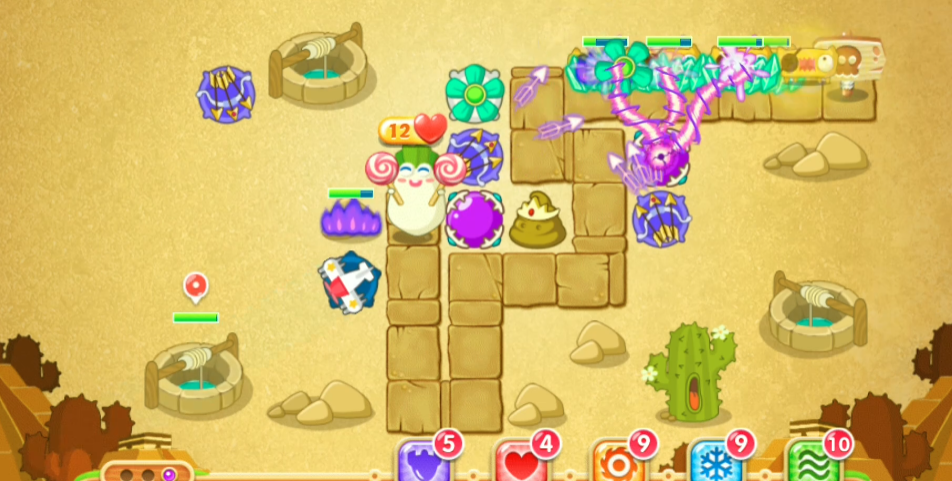 除了输出,控制节奏也很重要。飞行怪速度太快,即使火力足够,也可能因为攻击间隔问题而漏掉一两个。这时,减速类炮塔就能发挥作用,比如便便塔和雪花塔。在飞行怪的航线上,尤其是在火力密集区的前后,放置一两个减速塔,能显著降低它们的飞行速度,让输出炮塔有更多时间进行攻击。这就像让跑得快的人踩进泥坑,他自然就跑不起来了,我们的炮塔就能更轻松地击中他。合理搭配减速和输出炮塔,是稳定通关的关键,不要只顾着建造攻击塔而忽略了控制。