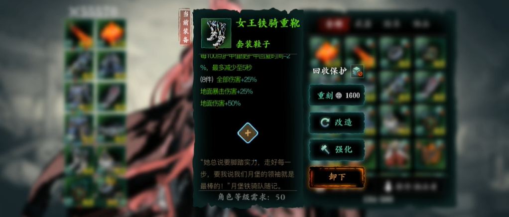 如果你对装备上现有的刻印槽数量或者颜色排列不满意,游戏里还提供了修改的机会,这就需要用到重刻石这个道具了。使用重刻石可以重新随机一件装备上刻印槽的数量和颜色的排列顺序,这对于后期追求完美装备、搭配出理想潜能的人来说至关重要。因为一件装备的底子(槽数和颜色序列)决定了你能玩出多少花样,有时候刷到了一件好装备,但刻印槽的布局不对,就可以用重刻石来洗一下,争取洗出能搭配出你想要的潜能的完美布局。重刻石是一种非常珍贵的优化资源。