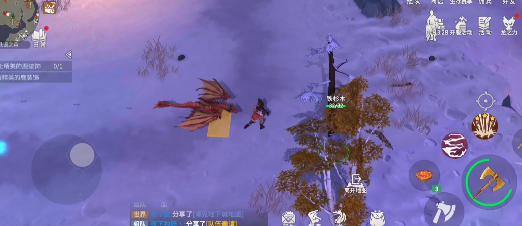 在进入铁杉森林之前,要做好充分的准备,除了基础的武器和防具外,还需要带上足够的采集工具。铁斧是砍伐铁杉木的必需品,建议准备两把以上,以防工具耐久度耗尽。同时,要携带足够的食物和药品,以维持角色的生命值和温度值,因为地图的低温环境会持续消耗保暖值。如果保暖值降到零,角色会不断损失生命,这会严重影响采集效率和安全性。合理利用龙的背包空间和雪橇载具,可以大幅提升单次出行的资源携带量,让你的每次冒险都更加高效。