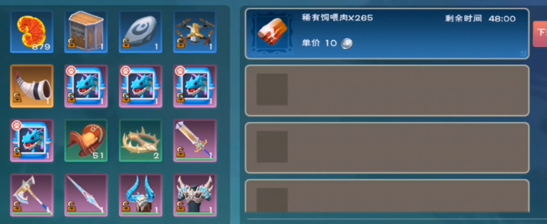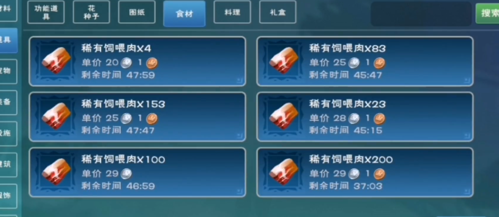 在游戏中,罕见肉是一种非常重要的资源,它主要是用来制作各种高级宠物食物的重要原料。它是制作大角牛食物、凶猛兔子食物、岩火剑齿虎食物、有毒龙食物和灰鲭鲨食物等必需品之一。罕见肉还可以用来烹饪,能够制作出提供饱腹感恢复的特殊食物。由于它的用途广泛且与高阶内容相关,罕见肉在游戏里很有价值。
