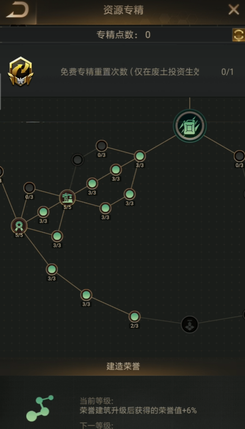 专精系统中有一些关键选项值得特别关注,比如建筑专精中的加工队列可以增加加工厂的队列数量和加工速度,资源专精中的建造冗余能在升级荣誉建筑时大幅增加荣誉获取量,甚至实现翻倍效果。建筑大师专精允许你建造额外的堡垒建筑,而联合研究则能提高每个病毒研究所提供的抗性加成。这些专精在游戏进程中能发挥重要作用,帮助你更高效地管理资源和应对战斗。