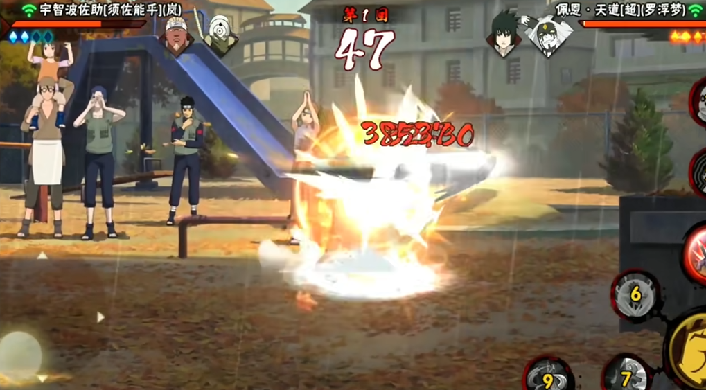 在实战中,要想施展精彩的组合,除了技能衔接,还要对战斗节奏和敌人状态有很好的把握。佩恩的奥义“地爆天星”范围广阔,身后也有判定,可以用来先手吸引敌人,或者作为连招的收尾。一个常见的策略是,先用召唤或者走位逼迫对手,然后用技能起手取得优势,注意利用普攻和技能命中来积攒奥义点。当对手的替身术用尽,或者被你控制住时,就是释放“地爆天星”的最佳时机,命中后伤害非常可观。在墙角作战时,佩恩的普攻第五段击飞后可以很顺畅地接上技能,形成强大的压制循环。