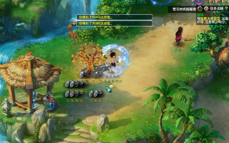种摇钱树的步骤很简单,先选个合适的地方,比如江南野外、大唐境外、大唐国境、长寿郊外或者东海湾等。把树苗种下去后,从种下那一刻起,系统会在第5分钟、第10分钟和第15分钟通过邮件或聊天提醒你照顾树苗。每次收到提醒,你就得赶紧去树苗那里浇水一次、施肥一次,注意别过量,以免减少摇树的机会。树苗从种下到枯萎大概要40分钟,成熟后的元宝可以保留4个小时让人去捡。