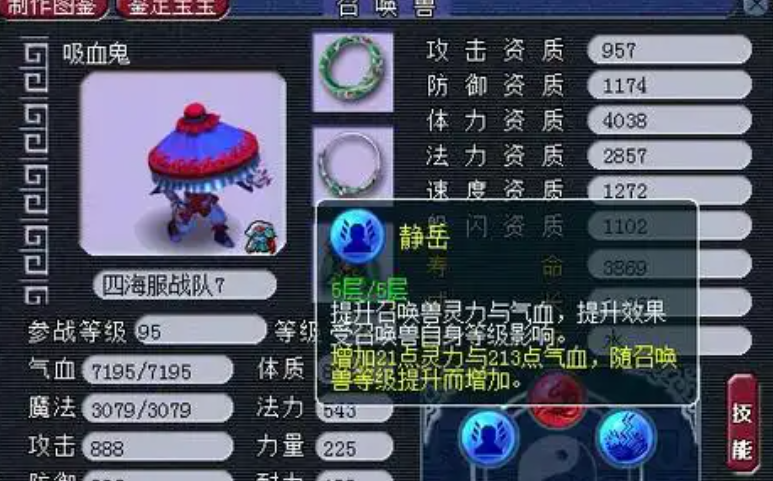 有一些内丹是血法宝宝必备的,如静岳和灵光。静岳能同时增加气血和法力,这对血法宝宝来说都是实实在在的提升,加血能使其更耐打,加法力也能提高法术伤害。灵光则根据宝宝魔力点数增加法术伤害,血法宝宝虽然不加全魔,但魔力点数也不低,因此灵光的收益依然不错。除了这两个,狙刺和灵身也是常见的输出内丹。狙刺在触发法术连击时增加额外伤害,灵身则在触发法术暴击时提升伤害,它们都能在特定情况下增强宝宝的输出。如果你的宝宝技能中使用了高级反震,带灵身可能会被有阴伤内丹的攻宠克制,这点需要注意。