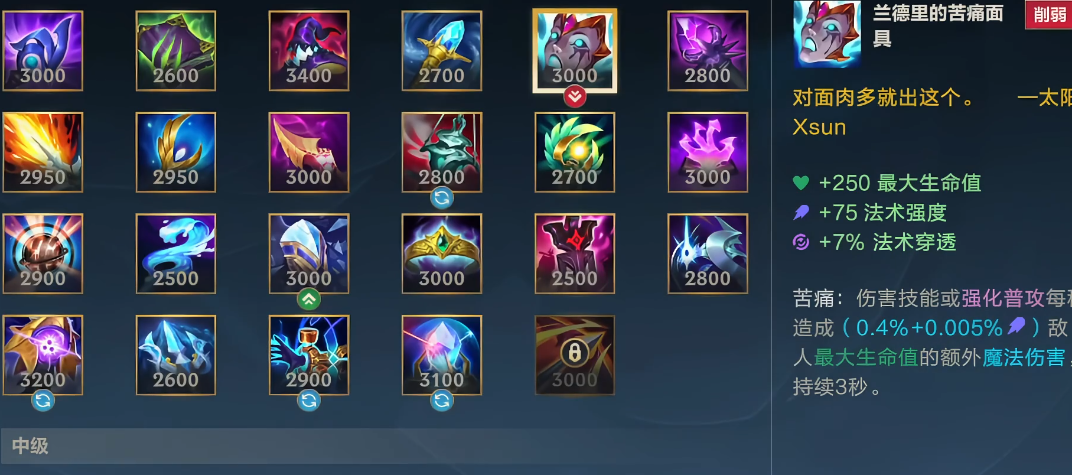 布兰德的核心装备首选兰德里的苦痛面具,它与被动效果完美搭配,能显著提高持续伤害。中期可购买莫雷洛秘典对抗高回复敌人,或选择中娅沙漏提高生存能力。鞋子通常选择法穿鞋或CD鞋,附魔中娅沙漏或火箭腰带以增强机动性。后期装备包括灭世者的死亡之帽和虚空之杖,进一步提高法强和穿透,确保在团战中能造成爆炸伤害。