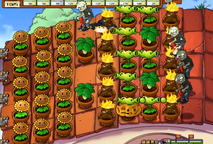到了游戏的中段,放置磁力菇和攻击性植物是稳固防线的关键。磁力菇应该种在阵地中间,配合咖啡豆来激活它在白天的能力,这样就能有效地吸走跳跳僵尸的弹跳杆,让它们失去跳跃能力变成普通僵尸。同时,在向日葵前面种上西瓜投手来形成火力输出,再往前种高坚果作为防御。如果窝瓜还没冷却好,就要换用西瓜投手等攻击性植物来应对接下来的僵尸。要注意及时修补被破坏的坚果墙,保持防线的完整,并且不要在花盆没填满前排的时候就种攻击性植物。