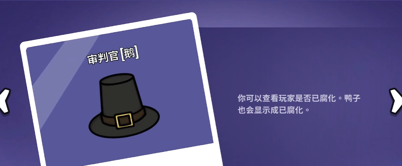这些新角色分布在鹅、鸭和中立三大阵营里,每一个的技能机制都很有特色。新增了审判者、警探艾米丽和黑客汤姆这几个角色,他们主要承担了信息收集和对抗鸭子的职责。审判者比较克制鸭子,他能够观察玩家的腐化情况,特别是在腐化碎片出现的时候能及时通报队友...