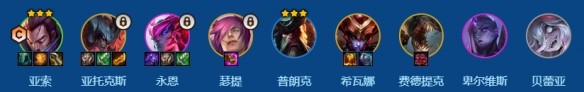 2、6级慢D给亚索升级3星,然后升级8级拿剑魔瑟提,给永恩升级2星后存钱升级9级提升阵容上限。