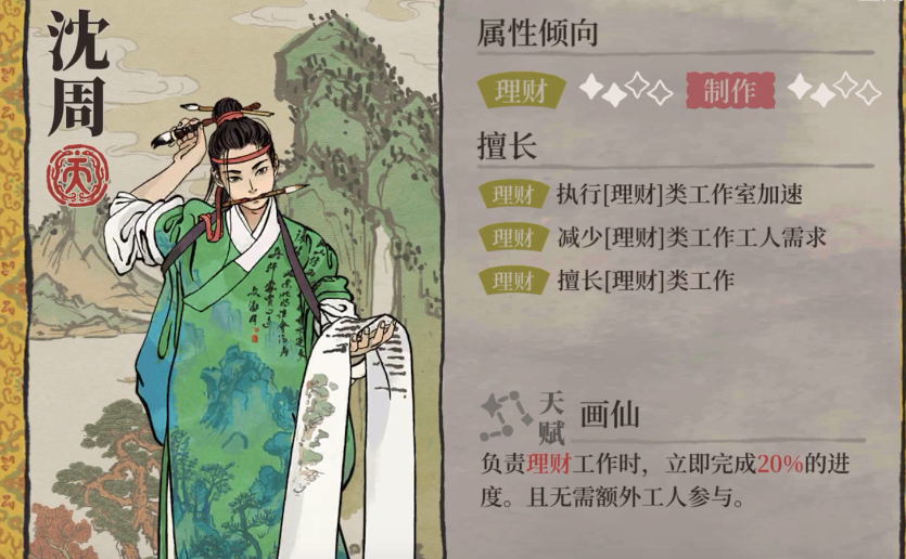 评估角色的农业能力,首先要了解其属性和天赋。有些角色的技能与农牧工作紧密相关,比如沈周作为画家,他的技能能提高农田的产出;文征明则能同时提升产量和牧场效率。唐伯虎能缩短作物生长周期,仇英在某些条件下还能触发额外资源奖励,这些技能都让他们在农牧方面表现优异。