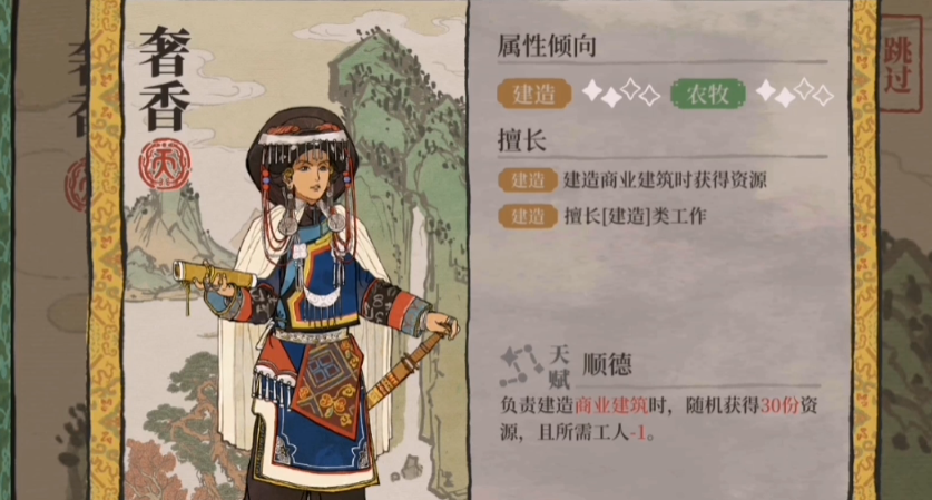 宝物搭配和特殊技能是决定角色实力的关键。许多角色的能力与其专属宝物密切相关,比如奢香夫人的彝香鼎可以显著增强她的农牧能力,她的彝香漫溢技能还能根据城市特定建筑的数量,按比例提升所有资源的产出,这在资源丰富的后期城市中尤其有用。有些角色的天赋有特殊的触发条件,如姜喜的成双天赋,在特定条件下可以大幅增加产出,这要求玩家在派遣工人时要精心规划,以实现最大收益。