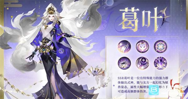 SSR葛叶:群体输出式神,能与友方一起变身为妖兽形态,属性增强