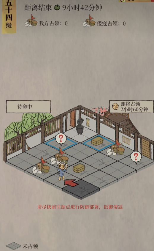 为了更有效地进行防御,你需要合理安排参与行动的居民。优先选择探险属性数值高的居民,并为他们装备能提升探险属性的珍宝,这样可以显著减少解决事件所需的时间。拥有特殊技能减少工人需求的角色在此玩法中非常有用。整个地图上分布着多个需要占领的据点,据点的数量与你的仓库等级直接相关,二级仓库有三个据点,仓库等级提升,据点数量会增加,同时解决单个事件所需的时间也会变长。你的核心目标是赶在倭寇之前,占领超过半数的据点,例如三个据点中占领两个,五个据点中占领三个,这样才能确保获胜。