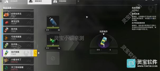 4、在【精制食药】选项中制作复活药,选择配方后,所需材料会自动添加