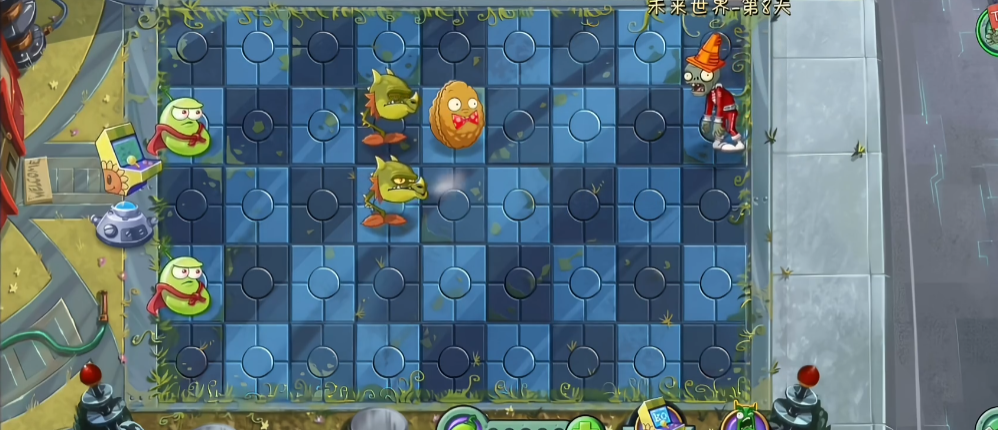 在未来世界的第8关,地图通常采用左上到右下的斜向布局,开场应选择向日葵,第一只僵尸可以用土豆雷或窝瓜快速解决,然后持续补充向日葵以保证阳光供应,阳光充足后可以搭配卷心菜投手、玉米投手等远程植物形成火力,建立防线时要注意利用磁力菇吸引僵尸的金...