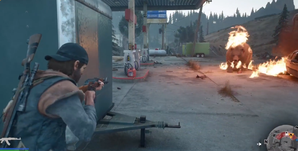 战斗一开始就要果断采取以火攻为主的策略,迅速削弱熊的生命值。确认一切准备就绪后,用远程武器发起攻击,并立刻投掷燃烧瓶进行攻击。燃烧瓶可以给熊造成持续的伤害,有效降低它的血量。在攻击的同时,要保持高度的灵活性,一边后退一边寻找机会引爆之前设置的爆炸物。在这个阶段,一定要避免任何形式的近距离战斗,因为熊的攻击力强且速度快,近距离交战风险极高。你的主要策略是利用爆炸和火焰在安全距离外消耗敌人。