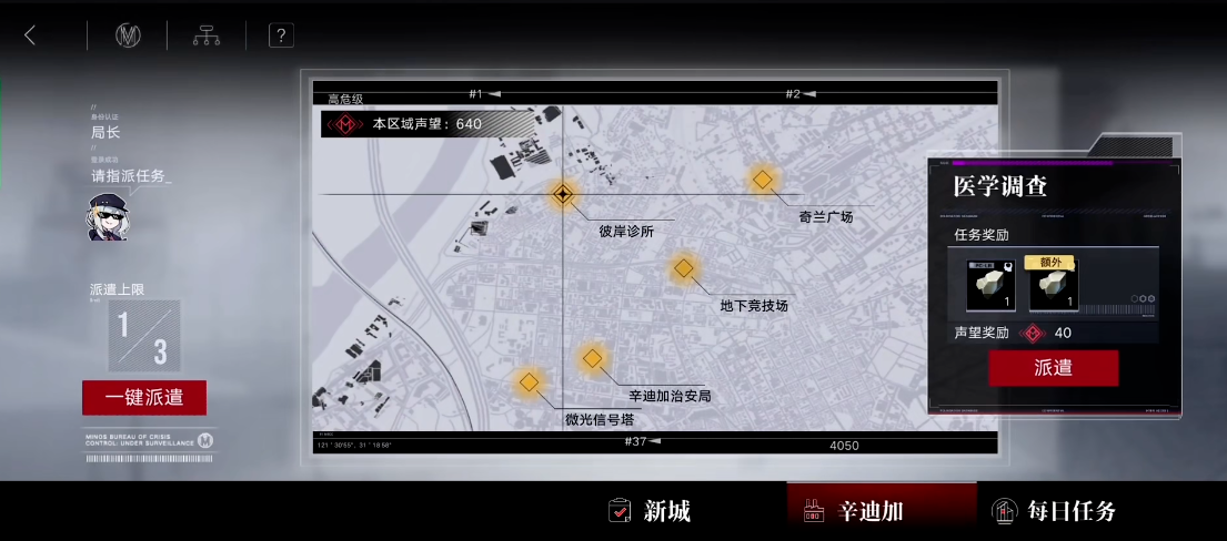 想要开启辛迪加派遣功能,你得先通过主线任务4-12。这种派遣模式在管理局里是自动进行的,但在辛迪加区域,它是一种特殊功能,只有在完成主线剧情并通过4-12关卡后才能解锁。在那之前,你在派遣页面上是看不到这个功能的。