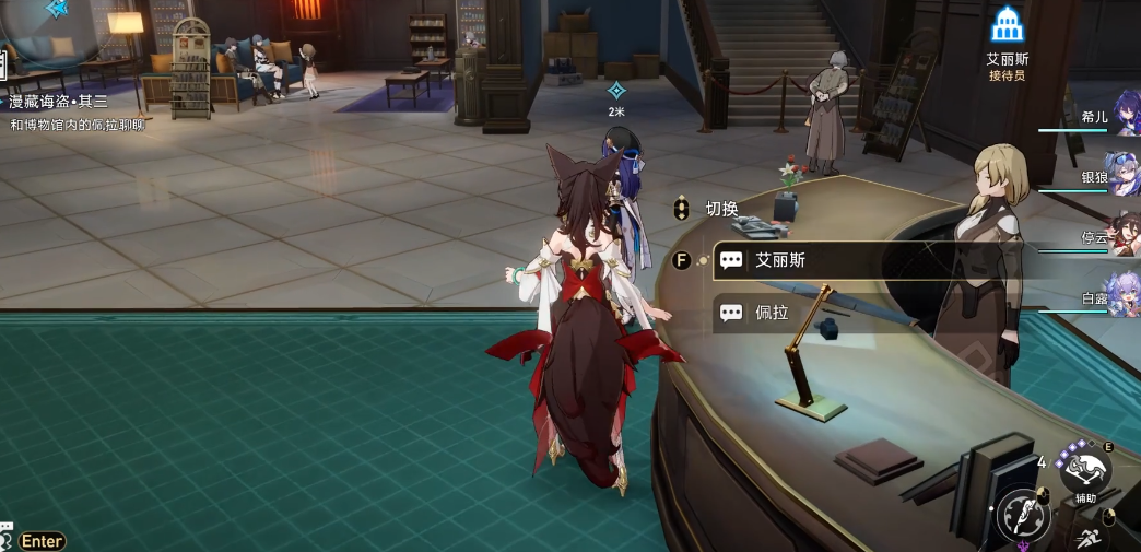 进入新阶段后,任务会要求你继续推进剧情,这时候你需要在博物馆内再次找到佩拉。新的剧情将围绕抓捕幕后黑手展开,在这个过程中需要正确使用密码。当被问及相关数量时,正确的回答应该是“嗯,大概不到60个”。这是一个重要的选择点,一定要小心对待。