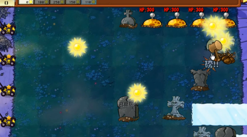把传送带送来的吞噬者种在下面的两个墓碑上,这样既可以清除墓碑,又能利用它的特殊能力。在第一排左边位置种一个阳光土豆雷,它不仅能提供阳光,还能在紧急情况下作为防御工具。这种开局布局能帮助你建立早期的资源点和防线基础。