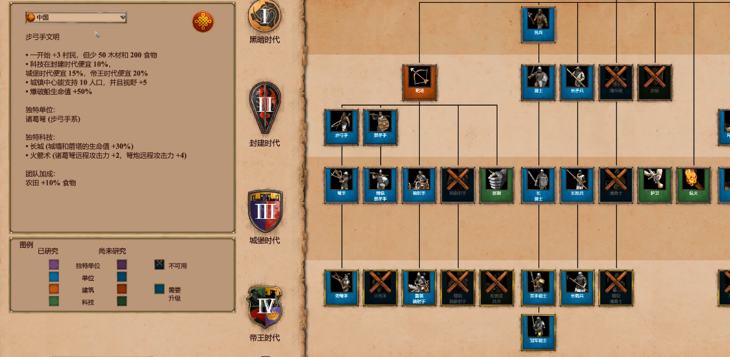 中国文明在后期凭借其科技成本优势和全面的兵种体系,能够构建出极具压制力的战术体系。进入帝王时代后,玩家应优先确保化学、弹道学等关键科技的研发,这些科技能显著提升诸葛弩、火枪手及手推炮等核心单位的作战效能。由于中国文明享有所有科技研发成本减少...