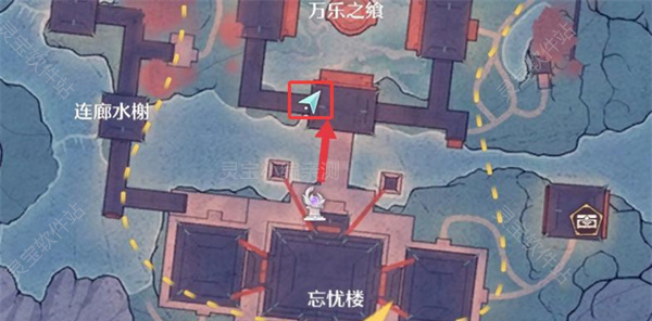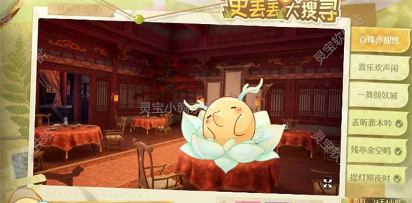 1、一舞倾妖城寻宝点在万乐之飨,需要先解锁忘忧楼传送点,把2月6日更新的风物任务做了就可以解锁右边的区域了
