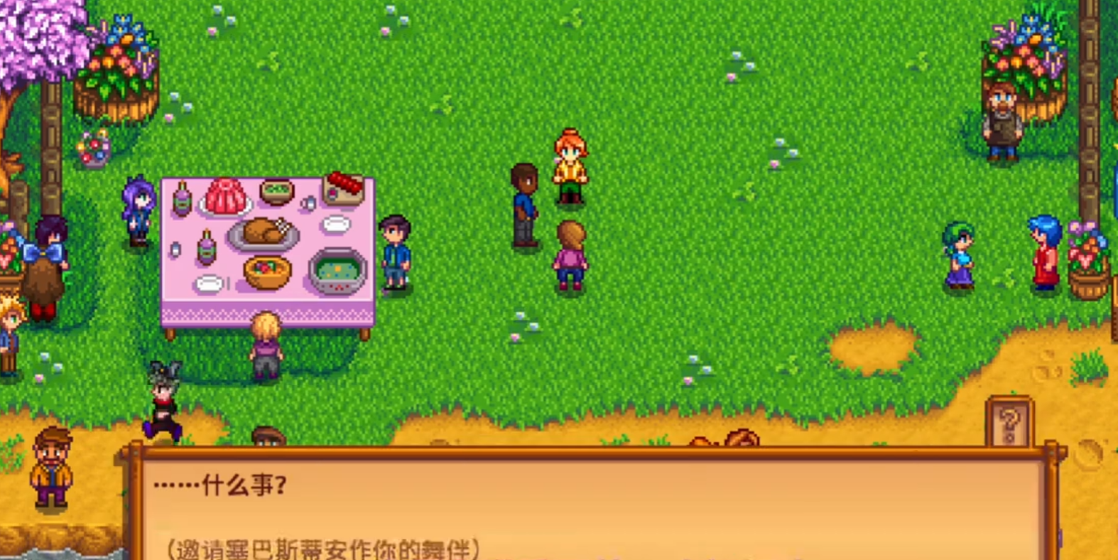 花舞节的重头戏之一就是邀请一位村民跳舞。你可以邀请任何单身村民作为舞伴,但前提是你们的关系至少要有四颗心,如果不够,邀请就会被拒绝。成功邀请并跳舞后,可以提升与该村民的关系。