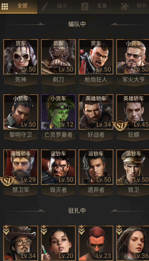 玩家可以根据自己拥有的英雄进行选择和搭配。对于资源有限的玩家来说,专注于普通橙色英雄是个不错的选择。比如黎明、枪炮、军火、死神等英雄在中后期也能保持较高的实用性,可以作为队伍的长期核心。一套常见的组合是遗弃、军火、枪炮,这个组合技能搭配合理,能应对大多数常规战斗。野兽、猛汉、雷霆也是性价比很高的组合,野兽提供减伤和闪避,猛汉能有效克制菜刀队,雷霆则兼顾承受伤害和恢复兵力。另一套组合是斗豪、蓝镖、死亡骑士,斗豪负责吸收火力,蓝镖能恢复编队兵力,死亡骑士专注于输出。这些组合都体现了坦克、输出、辅助角色的合理配置与技能协同。