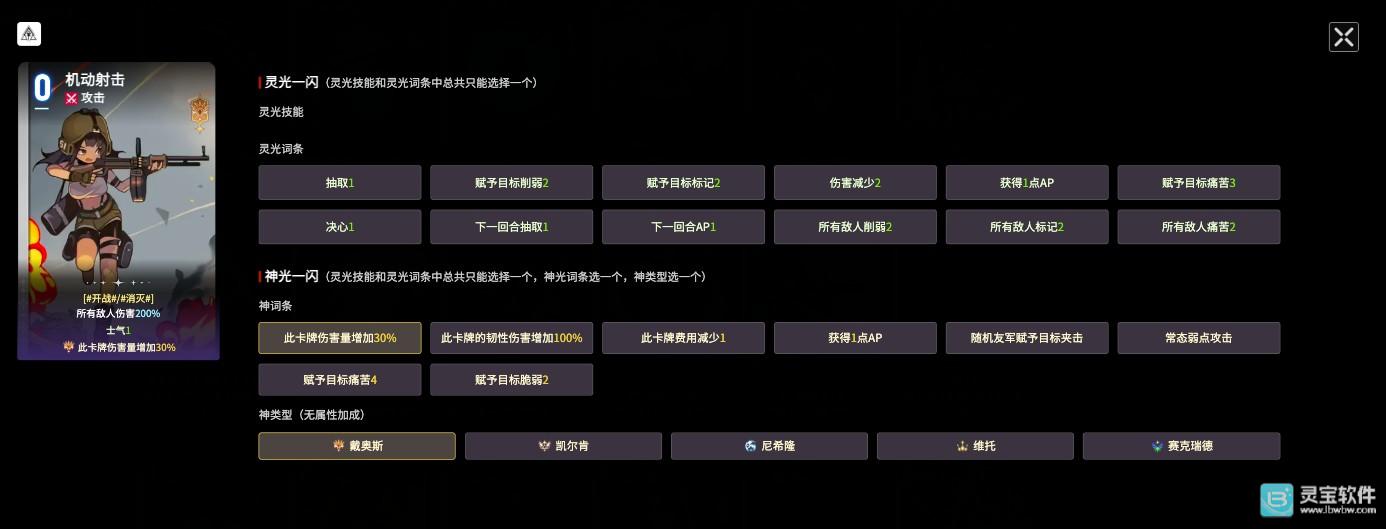 最后一张不可或缺的流血伤害卡牌是“机动射击”,这张高攻击性的万金油卡牌一启用即可使用,可以对敌人造成200%的伤害,迅速让敌人掉血。在对战过程中,推荐的灵光词条有“下一回合抽1”、“所有敌人削弱2”;神词条则是“此卡伤害量增加30%”、“此卡任性伤害增加100%”。
