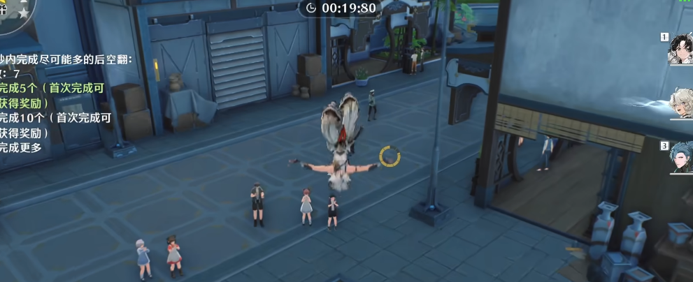 在后空翻挑战任务中,你可以在今州城的主城区域找到一位名叫修义的NPC,与他交谈后,他将会提供给你不同难度的跳箱子挑战,这是后空翻任务的开始。你的主要任务是,在规定的时间内,在指定的箱子上完成一系列后空翻动作,成功完成后,你将获得包括物质箱在内的丰厚奖励。