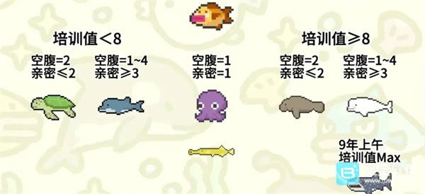 1、成熟形态中的黑鱼八爪、大白肚和黄鱼紫八爪、黄条鱼等比较特殊,很多都是可以随机进化的,例如0.0可以随机进化成八爪或大白肚,所以建议在进化当天上午保存游戏进度,如果下午进化错了,可以回档重新进化。