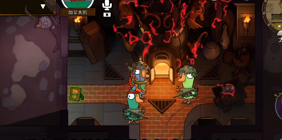 在《血色港口》这张地图中,游戏玩法与其它地图相比有着独特的魅力,最引人注目的就是它的昼夜交替和腐化系统。地图会在白天和夜晚之间自动转换,白天一切如常,玩家的视线和行动不受任何限制。然而,到了夜晚,所有玩家的外表会被随机变换成16种特别的样子,而且夜晚你看不到其他玩家的名字,这对寻找队友和完成任务产生了不小的困扰。不过,鸭子阵营在这点上有着隐藏的利处,他们即便在夜间也能看到队友的名字,这使得在攻击时更为得心应手。而腐化系统是这张地图的灵魂,地图上散落着一些腐化物品,普通玩家(鹅阵营)一旦接触这些物品,就会累积腐化值,头像旁边的绿色进度条会显示累积进度。腐化值一旦满了,玩家就会进入腐化状态,视野中所有玩家的ID都会消失,角色也会变成怪物模样。想要摆脱腐化状态,玩家需要完成三个特定的任务。鸭子阵营在游戏一开始就处于腐化状态,因此他们对此免疫,而且他们拾取腐化物品还能缩短破坏技能的冷却时间。而乌鸦这个中立角色也可以主动腐化其他玩家。