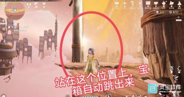 2、跳到大门后边,站在那里宝箱就会自动跳出。