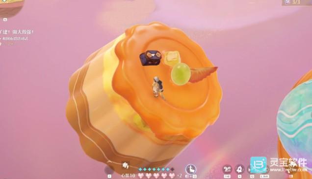 3、在终点门口后边可以看到一个布丁,跳到布丁上宝箱就会自动显示。