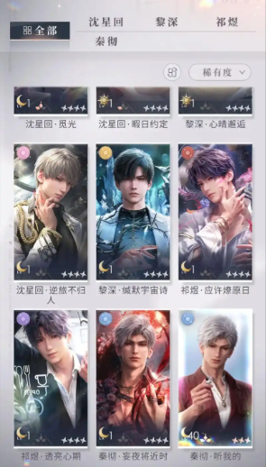 不同的角色,四星卡套装的选择要根据他们的星谱属性和战斗定位来,这样才能让队伍的战斗力最大化。比如沈星回的黄绿色星谱搭配的四星月卡套装“咫尺心绪”和“花野秘语”是培养时必不可少的,它们能有效提升攻击力;黎深的蓝红色星谱推荐的是四星月卡套装“不期而遇”和“绒雪永驻”,这些卡片更注重防御;而祁煜的紫粉色星谱适合的是四星月卡套装“纯白入夜”和“迷思”,这些卡片有助于提升攻击。对于后续角色秦彻,他的四星日卡套装“锋尖流连”和“锋尖欲擒”也很值得培养,因为它们获取方式多样,还能帮助通过高阶关卡。这些搭配都是基于角色的特性,确保套装颜色与主星谱一致,以激活更好的效果。