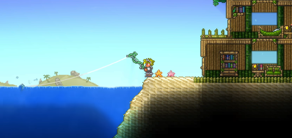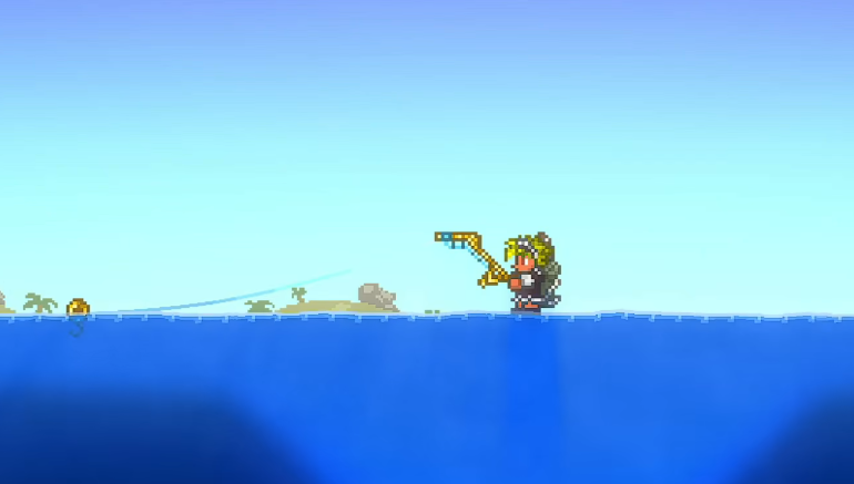 钓鱼最直接的好处就是能得到各种实用的装备。你有可能从水里钓到近战武器,比如剑或者斧头,它们在游戏早期能给你提供很大的帮助。还有一些特殊功能的物品,比如可以无限倒水的无底水桶、能快速传送到地狱的地狱海螺,或者是能大大提高角色跳跃能力的辅助装备。在一些特定的生物群落,你还能钓到紫挥棒鱼、黑曜石剑鱼等武器,还有掠夺鲨和锯齿鲨这类实用的工具。