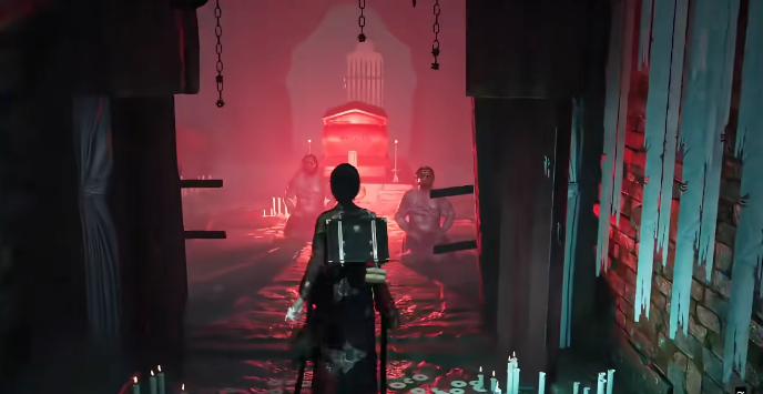 挑战的第一步是成功进入洞穴。玩家需要先去雾隐之林的河边区域找到目标地点。到了河边,可以看到一扇大门,靠近门旁的机关并与之互动,就能打开入口进入地下空间。进入后,直接操作机关下楼,洞穴探险就可以开始了。在第一层,玩家需要在互动桌子上的信件后面,注意打击特定的花来打开通路,然后在棺材后面找到该区域的宝箱。