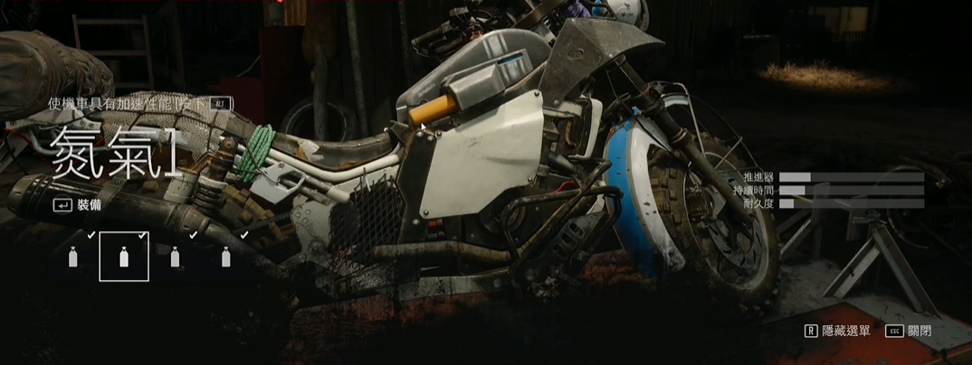 解锁并安装氮气加速后,使用方法因游戏平台而异。在PC版游戏中,你需要按住ALT键来启动氮气加速,而在PS版主机上,则需要按住X键。正确的操作时机是在摩托车速度即将达到最大值时按下对应的按键,这样摩托车就能获得一个短暂但强大的加速爆发。