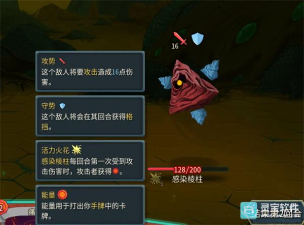 除了血厚,特性是自带火力火花,每回合第一次被打掉血量时,会给我们补充能量,相当于无负面效果加费,经过一层补强的卡组,一般战斗不会有太大压力。