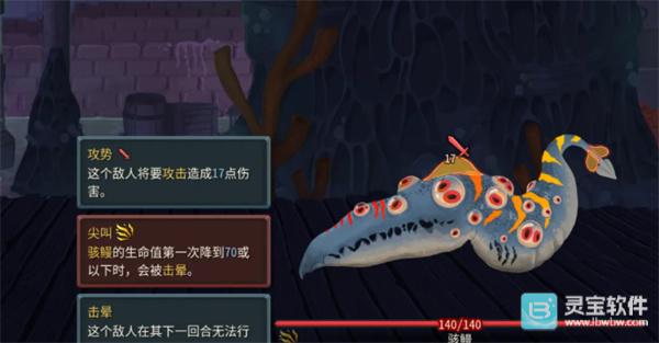由四个高攻击意图的花园幽灵鳗组成,自身有胆小增益效果,每回合第一次被攻击时会缩下去并获得格挡,同时每个幽灵鳗还会增加攻击力。在一层卡组相对较弱的时候,很容易压低你的血线,需要抓取范围伤害或高单体伤害进行针对,比如战士的旋风斩和重锤。这个版本群体怪较多,过渡范围伤害的优先级非常高,尤其是第一张范围伤害的卡。