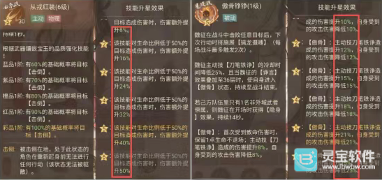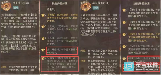 法系主输出以长孙无忌和长孙无垢为代表(同样仅列举绝代卡牌),从技能描述中可以看出,它们在星级达到10星和15星时才能发挥出强大实力,一方面是10星时的开局增怒,另一方面是15星时的攻击提升;