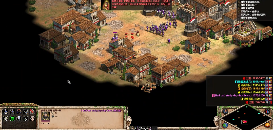 游戏初期,快速稳定发展经济是首要任务。玩家应迅速派遣农民采集木材和食物,这是后续军事行动的基础。地图中央修道院附近藏有牛车,用轻骑兵去取回它,能显著提高食物采集效率。同时,利用初始部队和早期建造的城墙应对敌人的小规模骚扰,为基地的建立争取时间。
